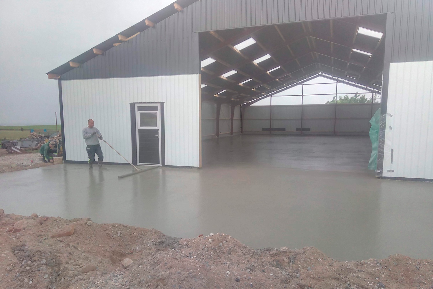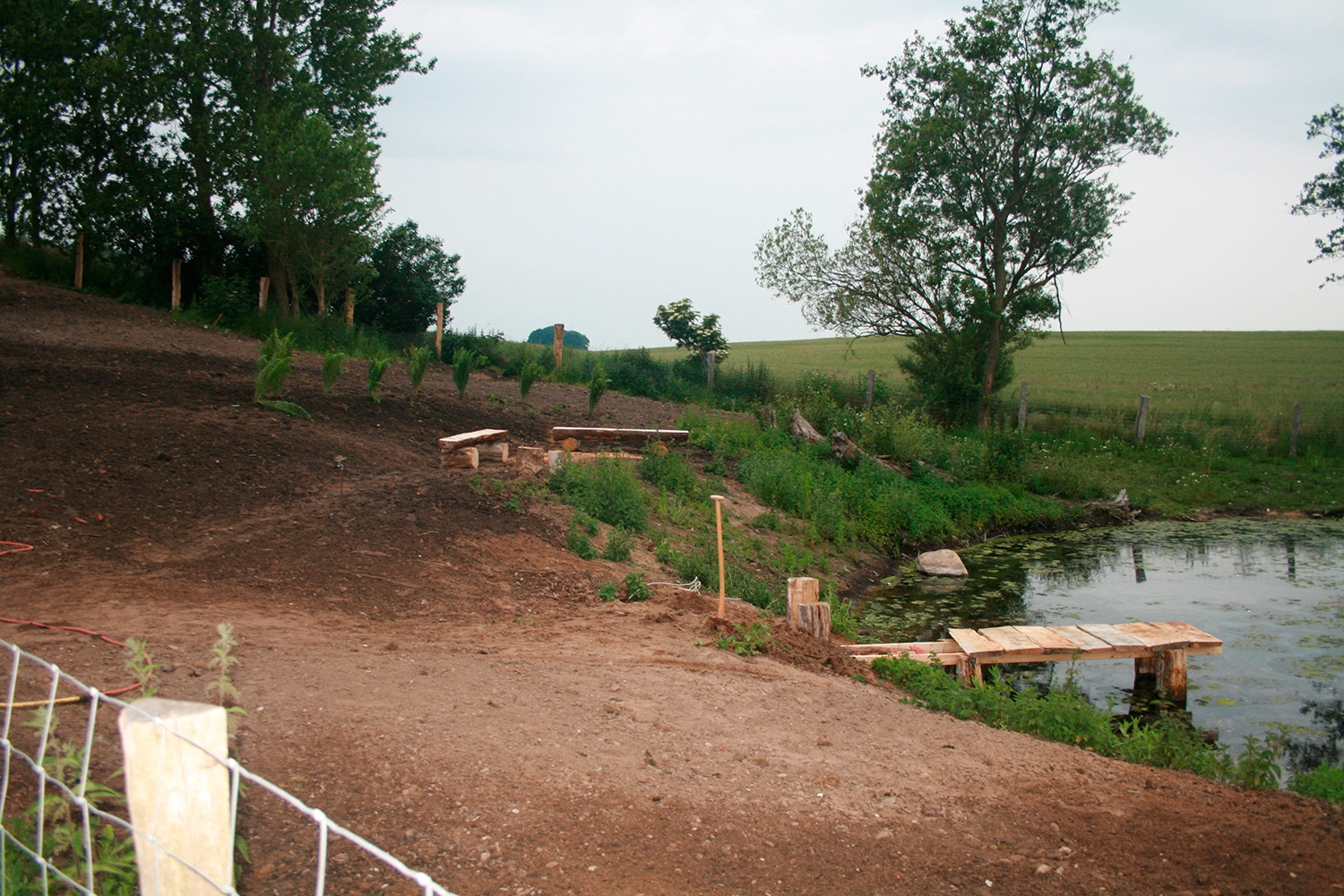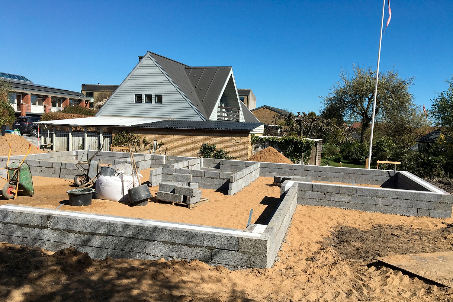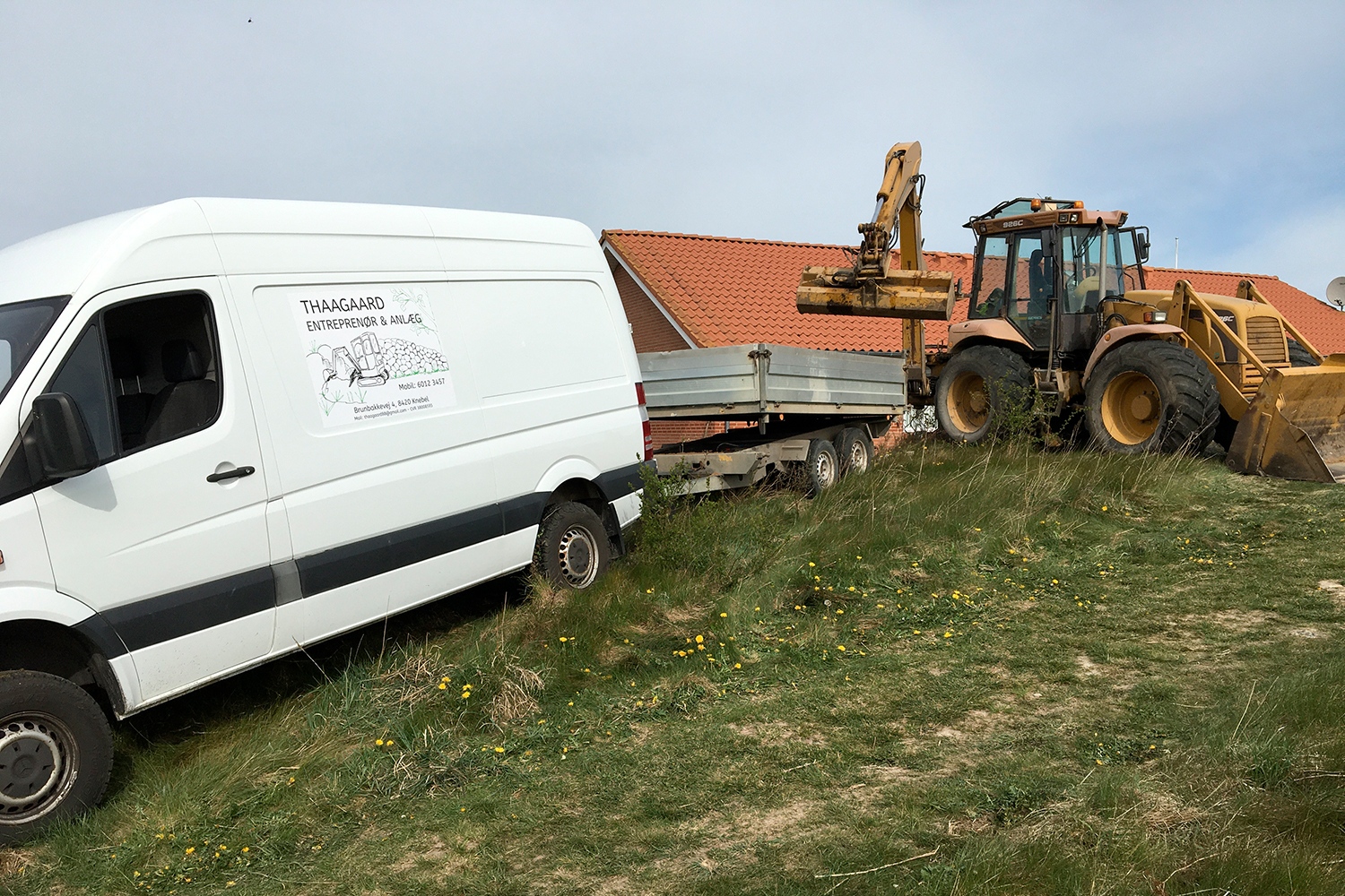 Opgave i Vistoft på Mols med nedrivning af carport, sænkning af niveau i indkørsel samt etablering af nyt stendige og trappe. Anlæg af terrasse, etablering af indkørsel, træfældning, flisning af træ og anlæg af ny græsplæne