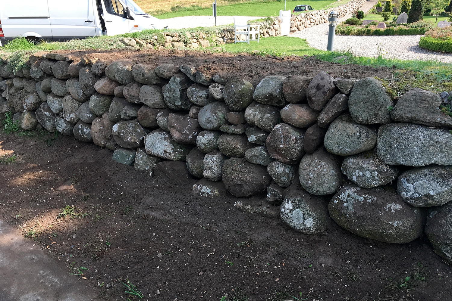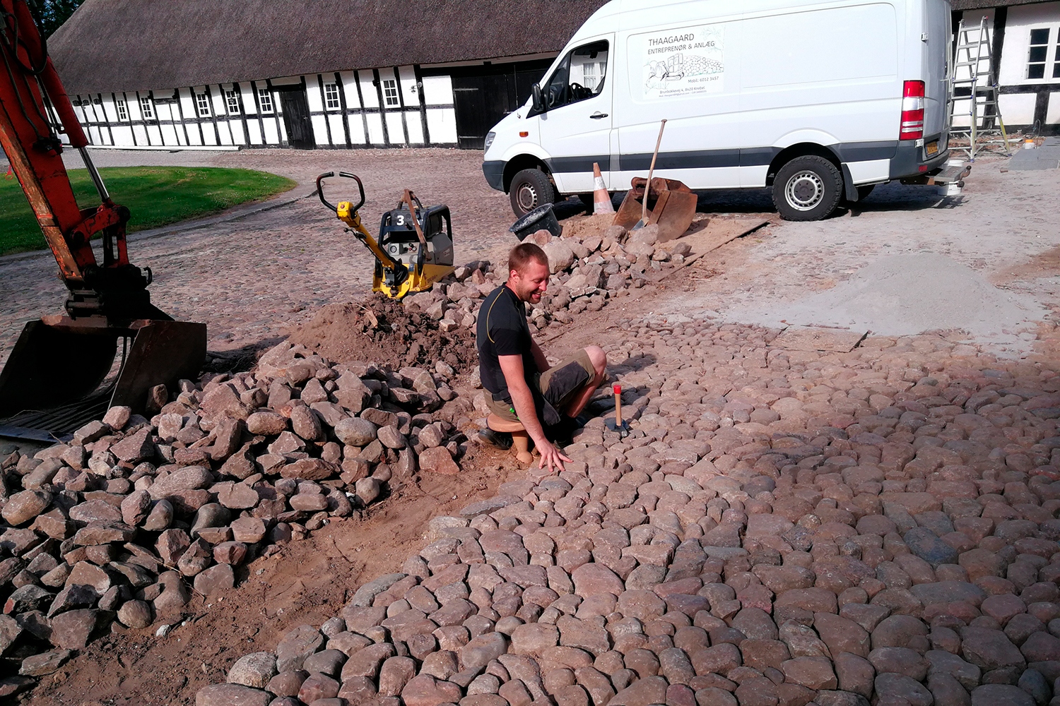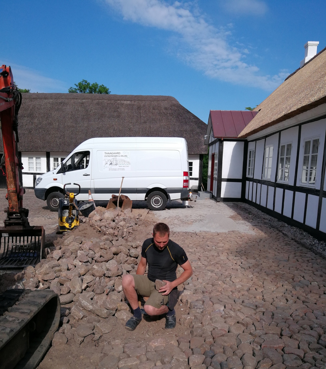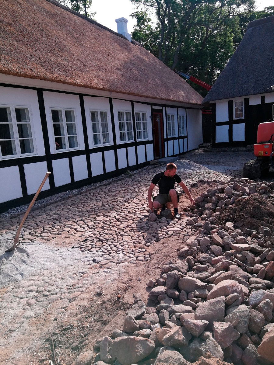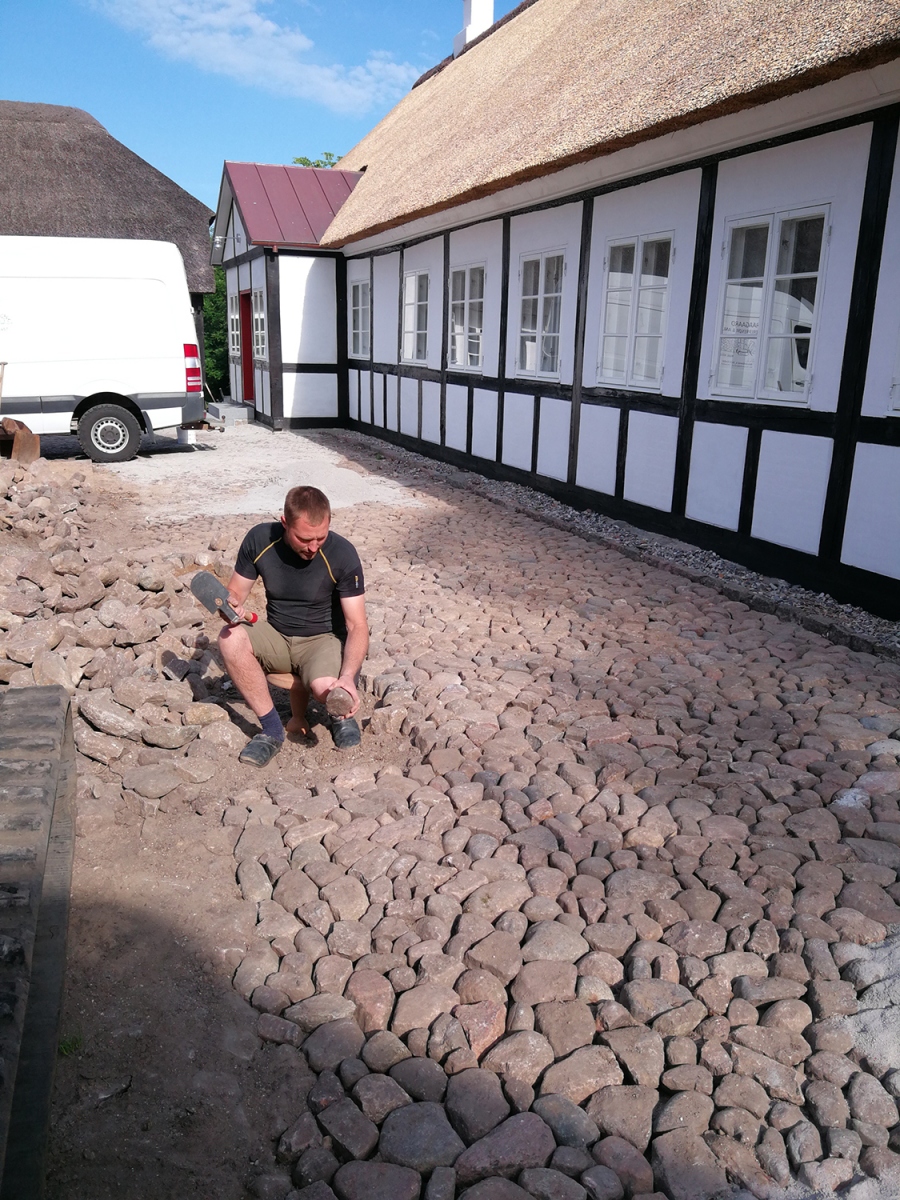 Tved Præstegård. Pigstensbelægning og stendige